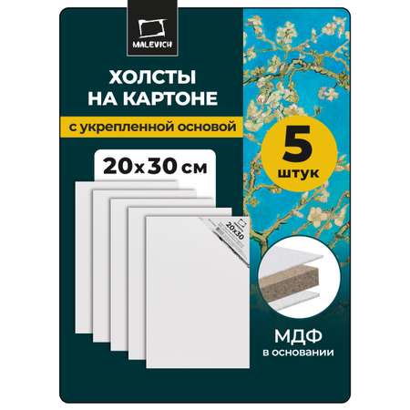 Холст Малевичъ на картоне 20х30 см набор 5 штук