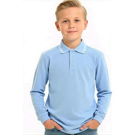 Рубашка поло для мальчика ГОЛУБОЙ ,ВОРОТНИК С ПОЛОСКОЙ выполнена из плотного трикотажного полотна. Поло с длинным рукавом для мальчика с манжетами. Поло для мальчика комфортно в носке и уходе. Рубашка трикотажная ,рубашка поло для мальчика хлопковая , лонгслив для мальчика ,кофта для мальчика , для подростка повседневная одежда в школу , школьная форма ,джемпер для мальчика футболка с длинным рукавом.Классическая однотонная недорогая футболка- поло для мальчиков изготовлена из мягкого дышащего хлопкового трикотажа. Эта модель рубашки-поло с длинными рукавами выполнена с манжетом, с застежкой-поло спереди на 3 пуговицы и воротником из основной ткани. Рубашка для мальчика идеалена для школы и является неотъемлемым элементом школьной формы.