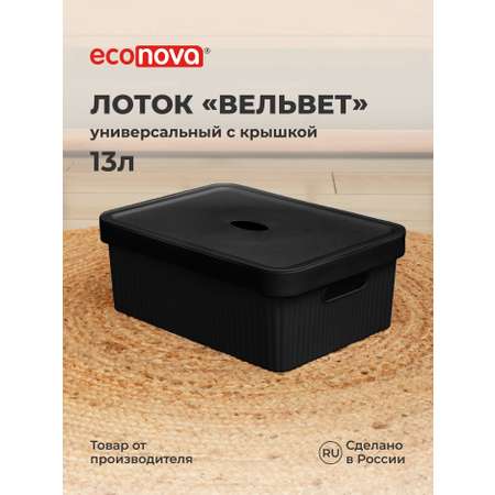 Лоток Econova с крышкой Вельвет 38х27х14.4 см 13 л черный