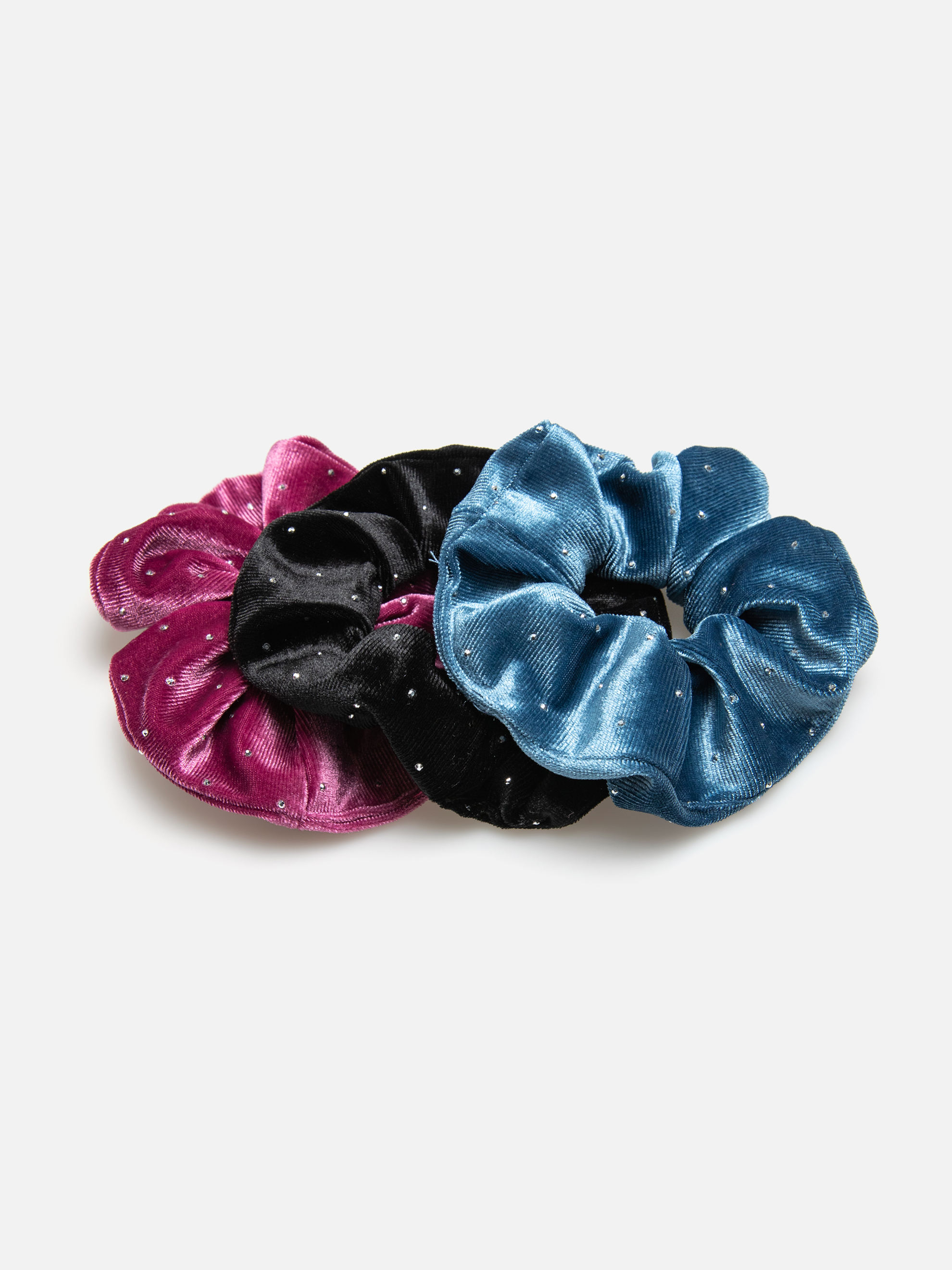 Набор из трех объемных бархатных резинок для волос. Блестящая ткань украшена декоративными стразами. Ширина резинки 4.5 см, внешний диаметр 13 см.Цены в интернет-магазине могут отличаться от розничных магазинов.