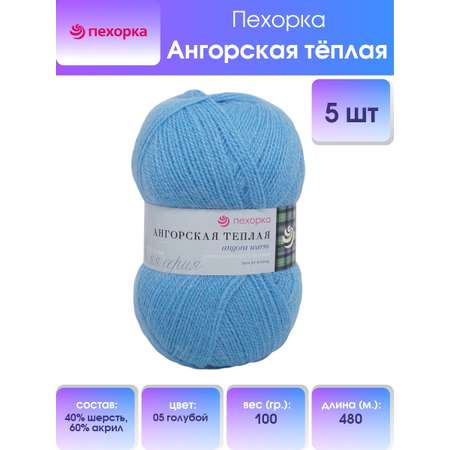 Пряжа Пехорка Ангорская тёплая полушерстяная 100 г 480 м 05 голубой 5 мотков