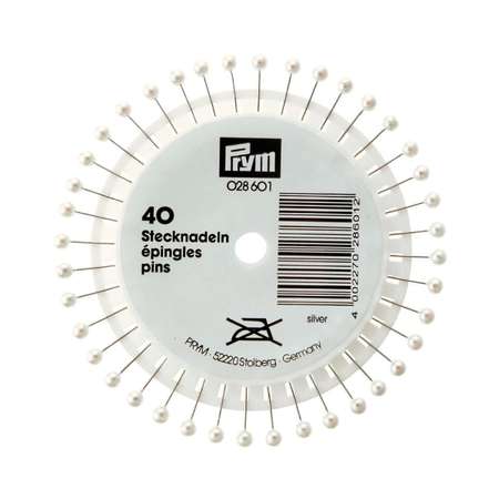 Булавки Prym стальные для шитья и рукоделия с жемчужной головкой серебряный 40 шт 028601