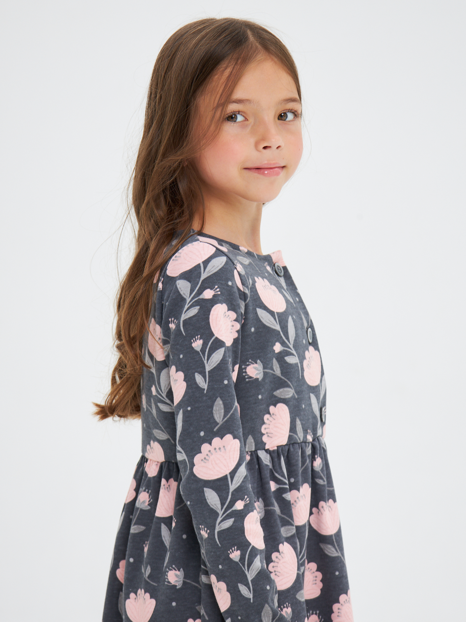 Ткань интерлок, из которой изготовлено платье, состоит на 100% из хлопка. Это гарантирует мягкость, гипоаллергенность и воздухопроницаемость материала, что особенно важно для нежной детской кожи.