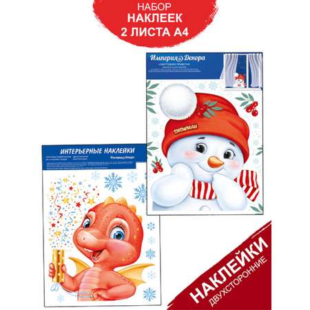 Наклейка Империя поздравлений на новый год украшение Снеговик и Дракон 2024