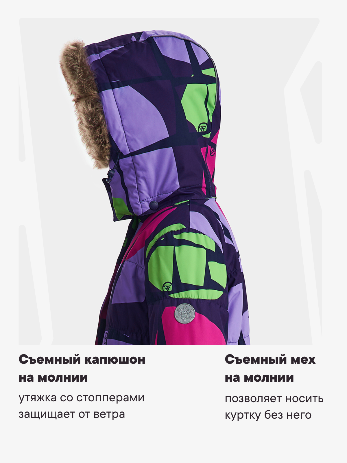 Теплый комплект отлично подойдет для холодной осени и морозной зимы. Мембранная ткань защитит от дождя и ветра, имеет грязеотталкивающий эффект. Стильный дизайн поможет выделиться в толпе, как малышу, так и девочке подростку.