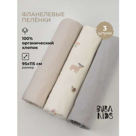 Пеленки фланелевые 3 шт BUBA KIDS Заповедный лес/ серый/ бежевый 95х115 см