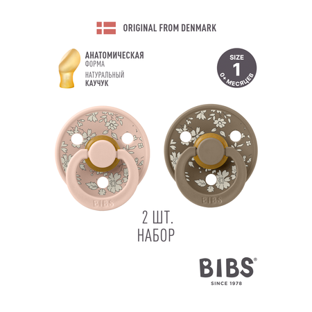 Набор 2 шт. Соска-пустышка BIBS Liberty Colour Anatomical Capel Blush/Dark Oak 0+ месяцев