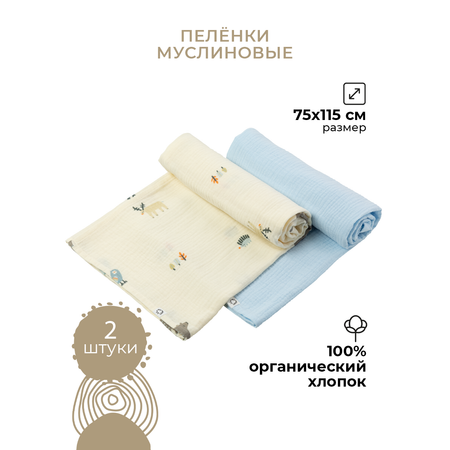 Пеленки муслиновые 2 шт BUBA KIDS Таежная ночь/ нежно-голубой 75х115 см