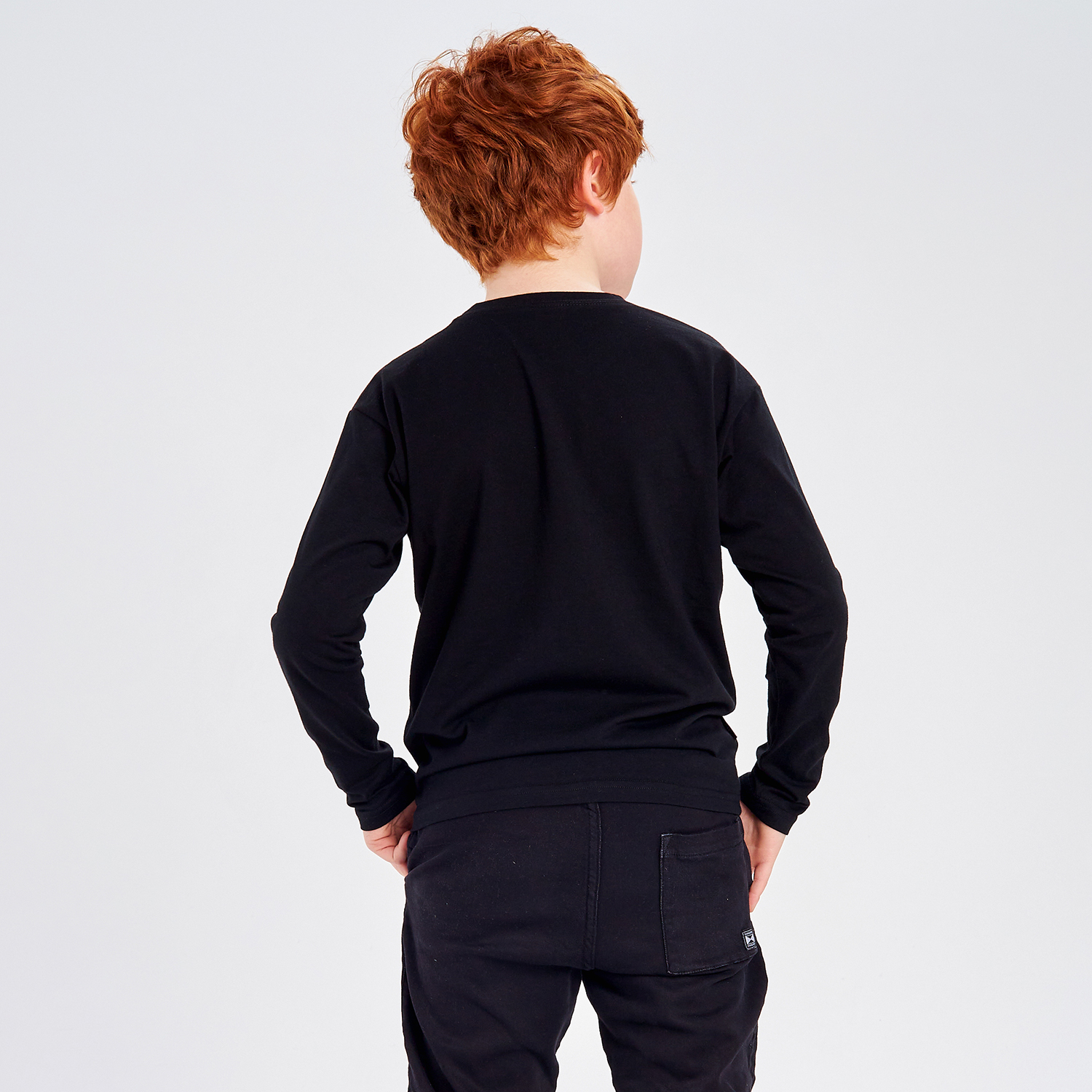 Стильный брендовый лонгслив для девочки или лонгслив для мальчика черного цвета: