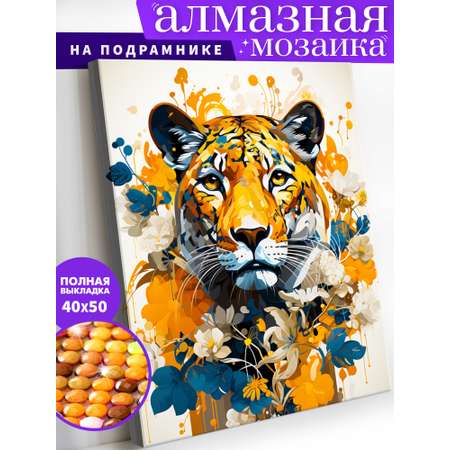 Алмазная мозаика Art on Canvas холст на подрамнике 40х50 см Тигр в цветах