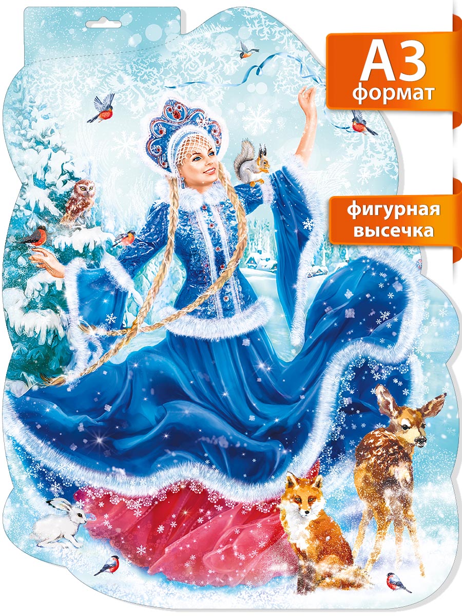 Цена на Новогодний плакат Мир поздравлений на окно Снегурочка двусторонний А3 - 246 ₽.