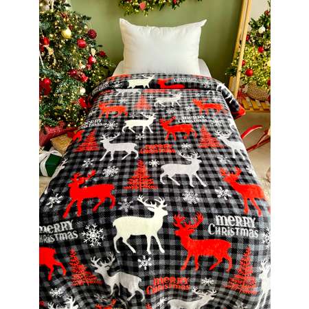 Плед PAVLine Покрывало трикотажное ворсовое размер 150х200 цвет Олени красно-белые
