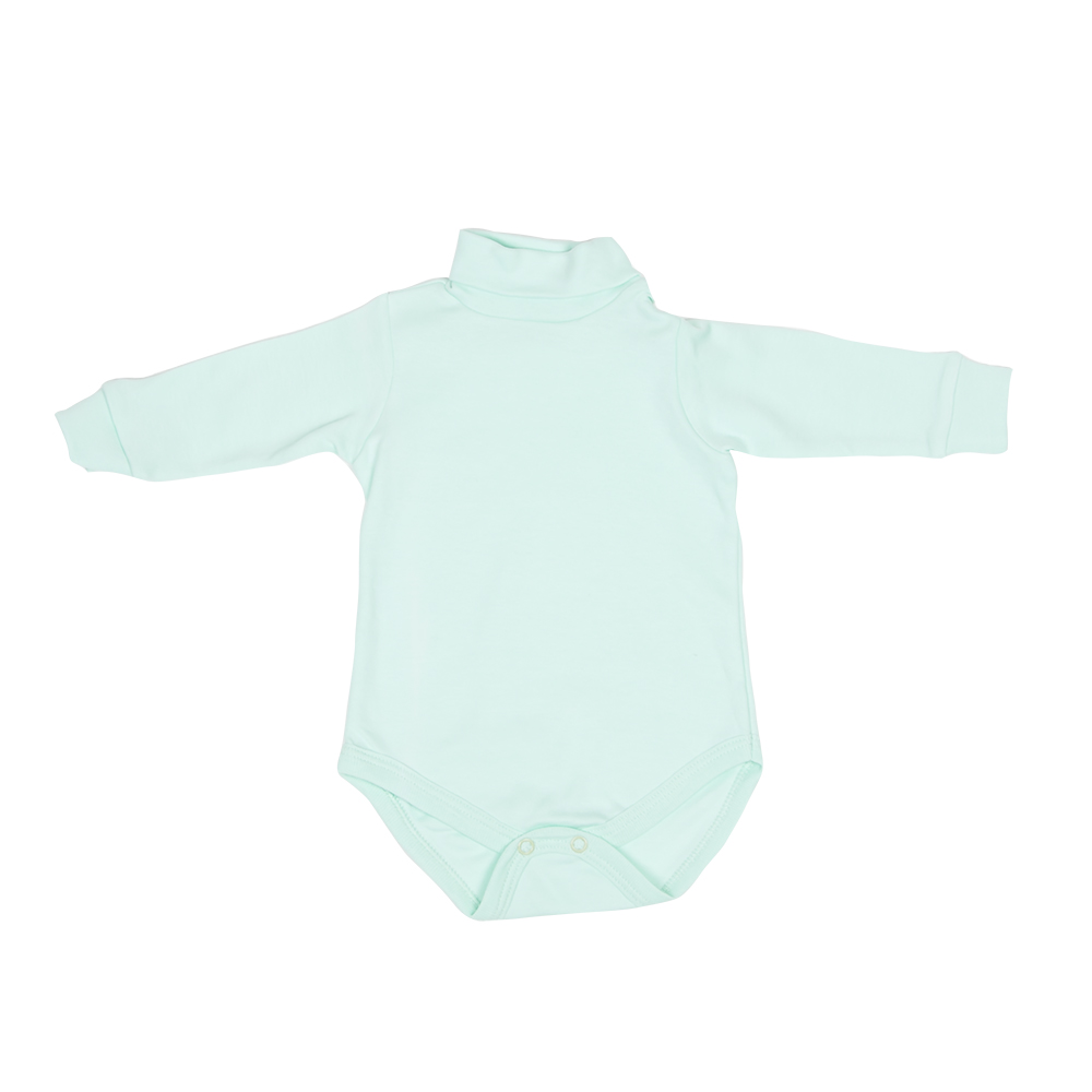 Боди с длинными рукавами и воротником-стойкой застегивается на удобные застежки-кнопки на воротнике, по плечу и ластовице, которые помогают легко переодеть младенца или сменить подгузник. Края рукавов дополнены широкими эластичными манжетами, не сжимающими запястья ребенка.