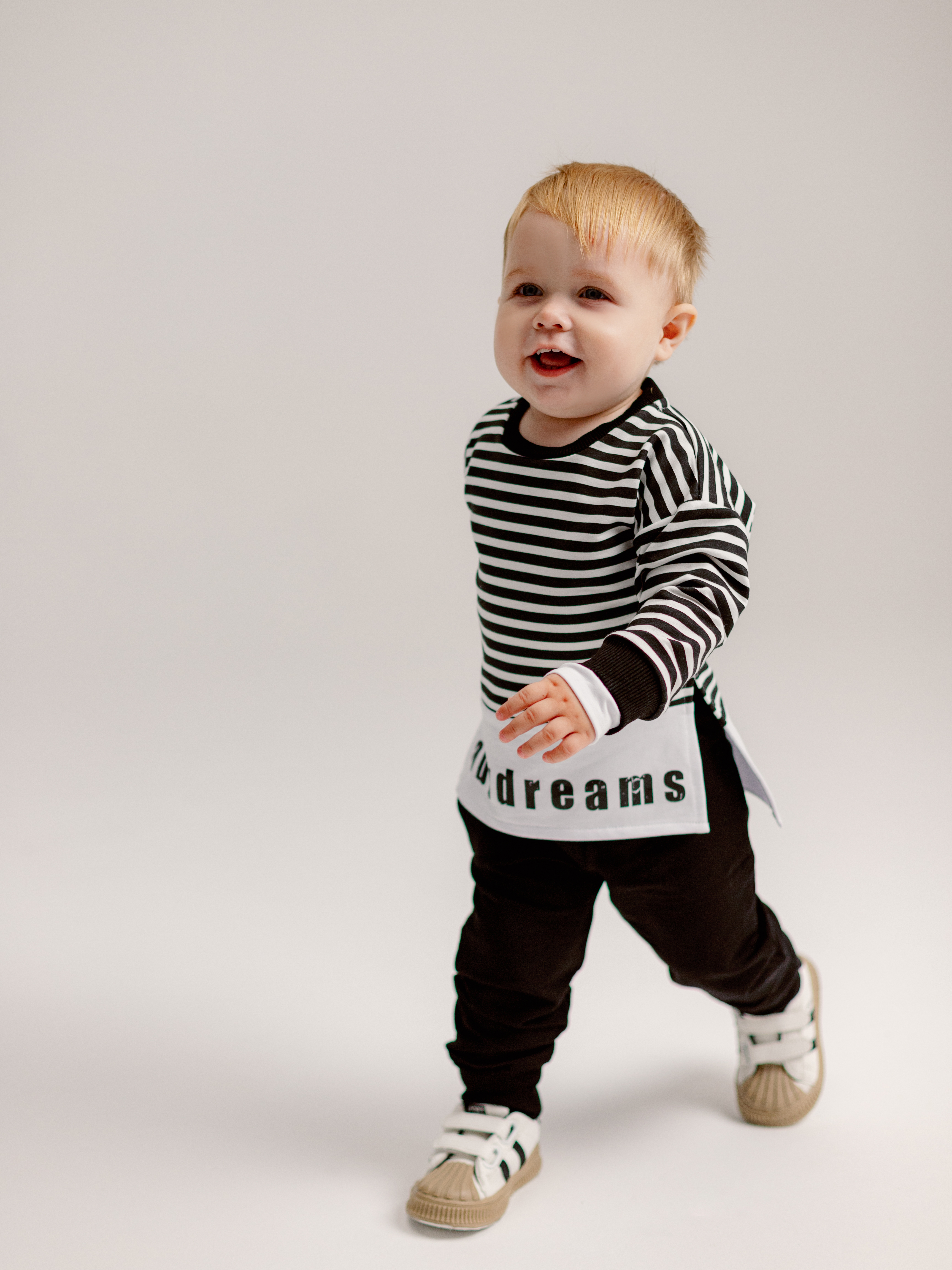 Уважаемые родители! Представляем уникальную коллекцию спортивных костюмов для самых маленьких! Комплекты для мальчиков и девочек станут незаменимыми элементами гардероба новорожденного ребенка. Детский трикотажный наряд теплый и стильный, поэтому ребеночек будет выглядеть красиво и элегантно. Идеально подходит для осеннего и зимнего,весеннего периода. Одежда изготовлена из высококачественной хлопковой ткани футер двухнитка, благодаря чему малыш почувствует комфорт и уют в любую погоду. Состоит из двух частей - худи и брюки. Подойдет для домашнего использования, походов в садик или для активных игр на свежем воздухе. Особенностью костюмчика является принт полоска, рисунок смотрится модно и эстетично, позволяет младенцу быть в тренде уже с самого рождения. Предлагаем широкое разнообразие размеров, чтобы вы могли выбрать самый подходящий. Спортивка станет отличным подарком на Новый Год, выписку или любой другой праздник. Дети будут рады носить такие нарядные и удобные вещи! Сделайте правильный выбор и убедитесь в превосходном качестве изделий от бренда “BabyDreams”.