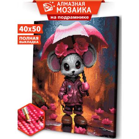 Алмазная мозаика Art sensation холст на подрамнике 40х50 см Мышка под дождем