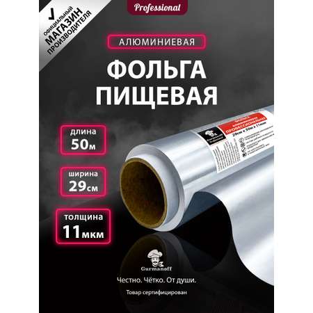 Цена на Фольга для запекания Gurmanoff 50 м х 29 cм 11 мкм профессиональная - 950 ₽.
