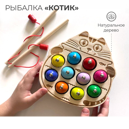 Развивающая детская игра AUKKA Сортер деревянный котик и рыбки по методике Монтессори