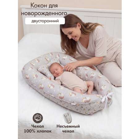 Детский кокон гнездышко для новорожденных KUZA со стильным принтом + подушка в ПОДАРОК!