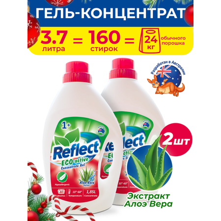 Экологичное концентрированное гипоаллергенное жидкое средство для стирки Reflect ECO ACTIVE Concentrate Gel (в комплекте 2 штуки по 1,85 л)- специально предназначен для стирки белых и цветных вещей, а также стирки детского белья от 1 года.