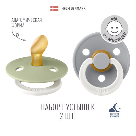 Набор 2 шт. Соска-пустышка BIBS Ночная Colour Glow Anatomical Sage/Cloud 0+ месяцев