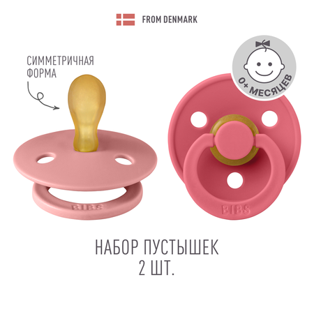 Набор 2 шт. Соска-пустышка BIBS Colour Symmetrical Latex Dusty Pink/Coral 0+ месяцев