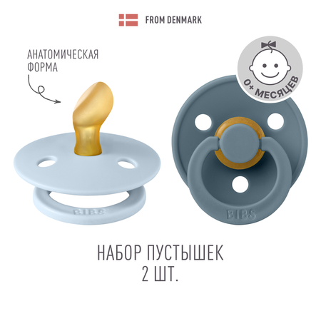 Набор 2 шт. Соска-пустышка BIBS Colour Anatomical Latex Baby Blue/Petrol 0+ месяцев