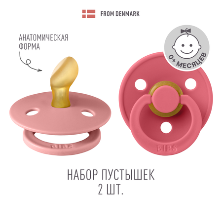 Набор 2 шт. Соска-пустышка BIBS Colour Anatomical Latex Dusty Pink/Coral 0+ месяцев