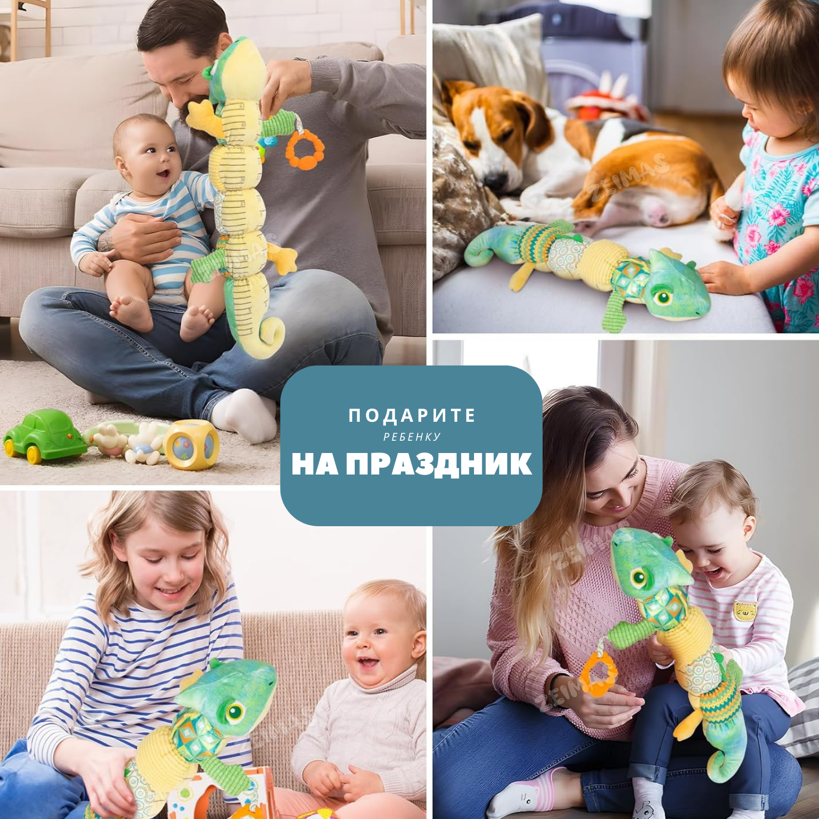 Игрушка подвеска мягкая Zeimas Ящерица развивающая музыкальная с прорезывателем погремушкой и пищалкой