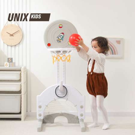 Баскетбольная стойка детская UNIX Kids Space grey 3 в 1 с хоккейными и футбольными воротами для дома и улицы