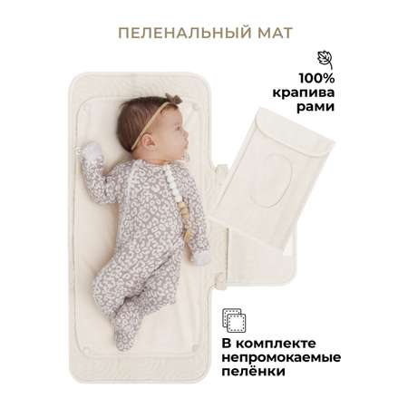 Всё необходимое всегда будет под рукой: в одном из карманов удобно разместятся подгузники, сменная пелёнка (две штуки входят в комплект) и детский крем, а второй предназначен для влажных салфеток.