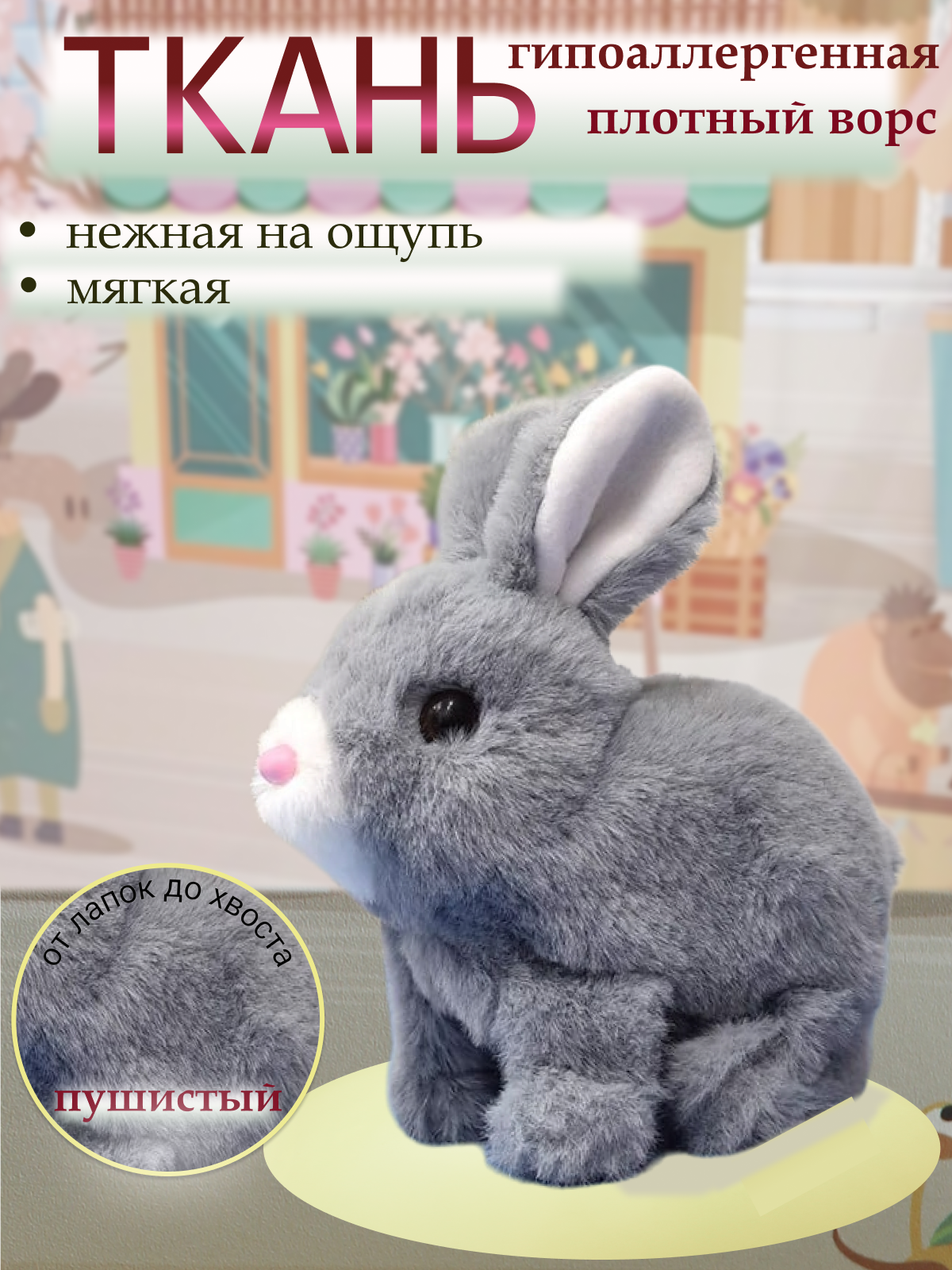 Интерактивная игрушка мягкая FAVORITSTAR DESIGN Пушистый зайчик серый с морковкой