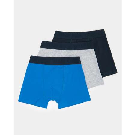 В комплекте Day and Night три модели однотонных трусов-боксеров для мальчика - тёмно-синие, серые и ярко-синие.