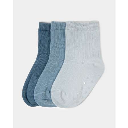 В комплекте Baby Gо три пары однотонных носков в рубчик для мальчика - синие, голубые и серые.