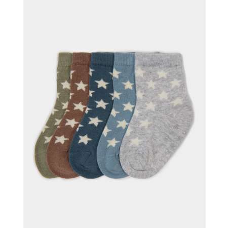 В комплекте Baby Gо пять пар носков со звёздочками для мальчика - хаки, коричневые, синие, голубые и серые.