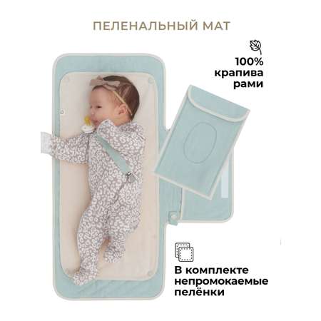 Всё необходимое всегда будет под рукой: в одном из карманов удобно разместятся подгузники, сменная пелёнка (две штуки входят в комплект) и детский крем, а второй предназначен для влажных салфеток.