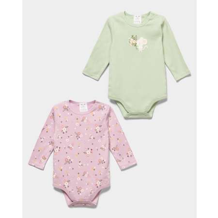 В комплекте Baby Go два боди для девочки - мятного и фиолетового цвета, украшенные цветочным принтом.