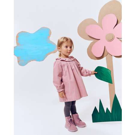 Велюровое платье для девочки Baby Go Trend розового цвета с блёстками и оборками на вороте.
