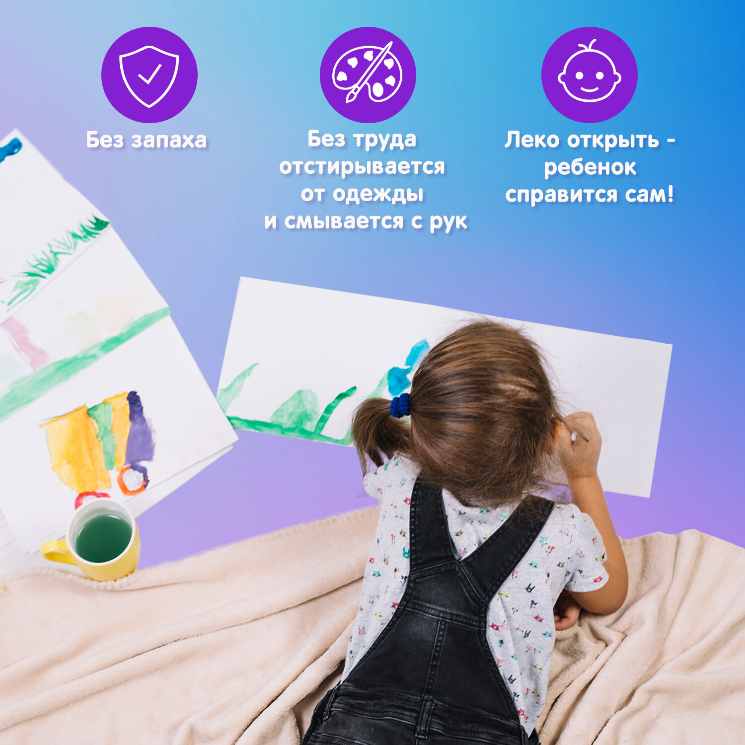 - Яркие цвета, безопасно для детей.