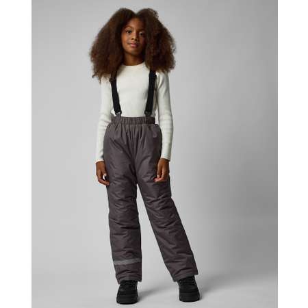 Утеплённые брюки для девочки Futurino чёрного цвета с эластичными регулируемыми бретелями.