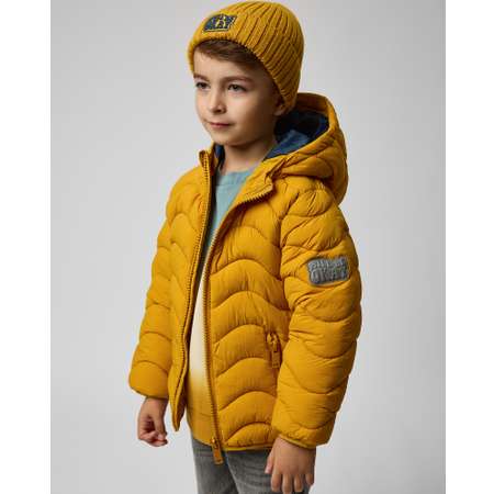 Стёганая куртка для мальчика Futurino Fashion горчичного цвета, со светоотражающей нашивкой на рукаве.
