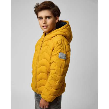 Стёганая куртка для мальчика Futurino Fashion горчичного цвета, со светоотражающей нашивкой на рукаве.