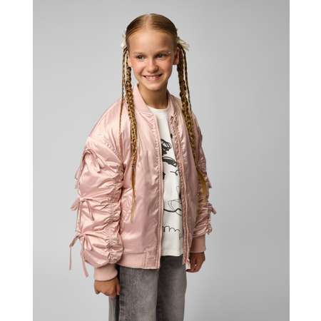 Куртка-бомбер для девочки Futurino Fashion светло-розового цвета, с бантиками на рукавах.