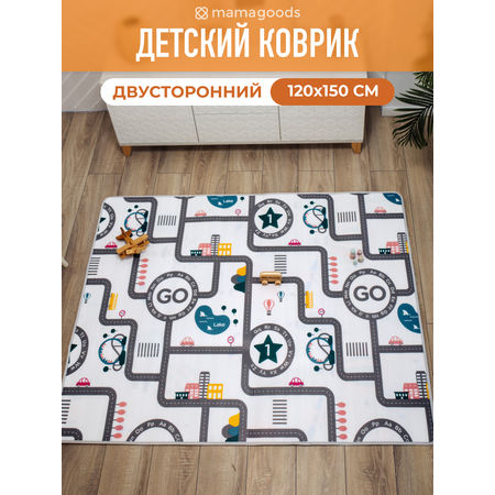Цена на Развивающий коврик детский Mamagoods для ползания складной двусторонний игровой 145 x 180 см Дороги и воздушные шары - 1200 ₽.