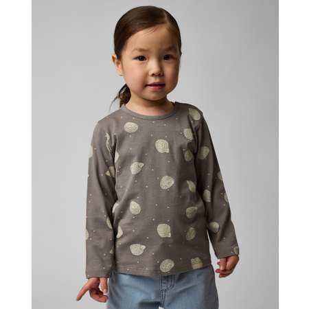 Серый лонгслив для девочки Baby Go, декорированный принтом с ёжиками.