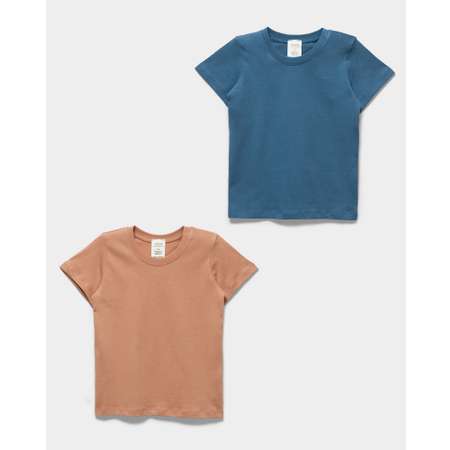 В комплекте Baby Gо две однотонные футболки для мальчика - бежевая и тёмно-голубая.