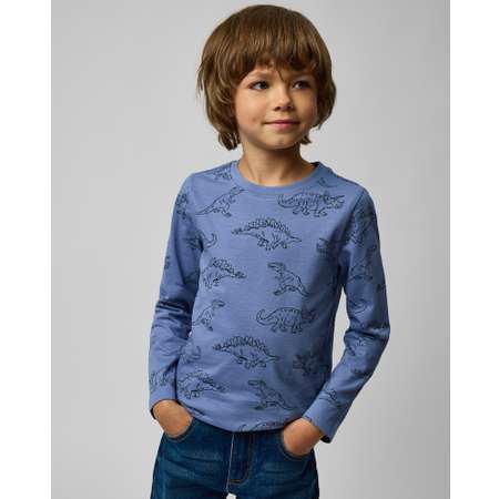 Синий лонгслив для мальчика Futurino, декорированный принтом с динозаврами.