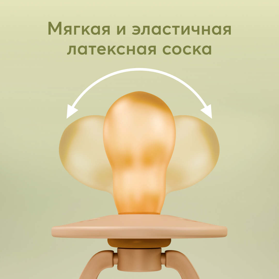 Латексная соска-пустышка изготовлена из природного материала и рекомендована для использования с 18 месяцев. Круглая форма пустышки успокаивает малыша и прекрасно удовлетворяет сосательный рефлекс, помогая ослабить неприятные ощущения во время прорезывания зубов. Вентиляционные отверстия в нагубнике позволяют избежать раздражения и опрелостей.