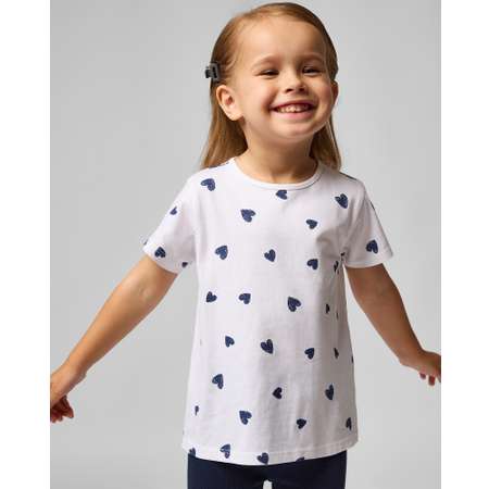 Белая футболка для девочки Baby Go, декорированная принтом с сердечками.