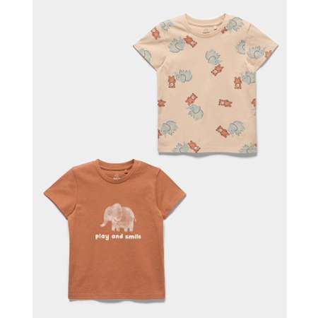 В комплекте Baby Gо две футболки для мальчика, декорированные принтом - коричневая и бежевая.