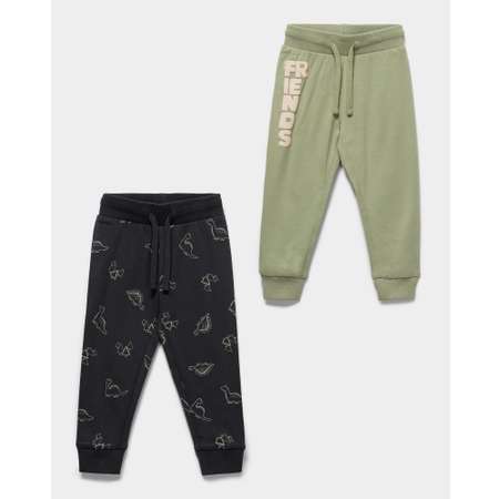 В комплекте Baby Go две модели брюк для мальчика - цвета хаки с надписью и тёмно-серые с динозаврами.
